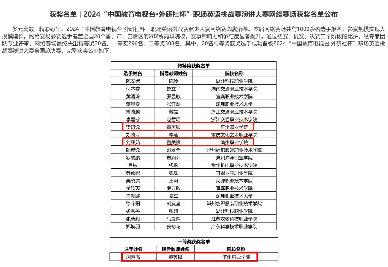 公司荣获2024“中国教育电视台·外研社杯”职场英语挑战赛演讲大赛特等奖