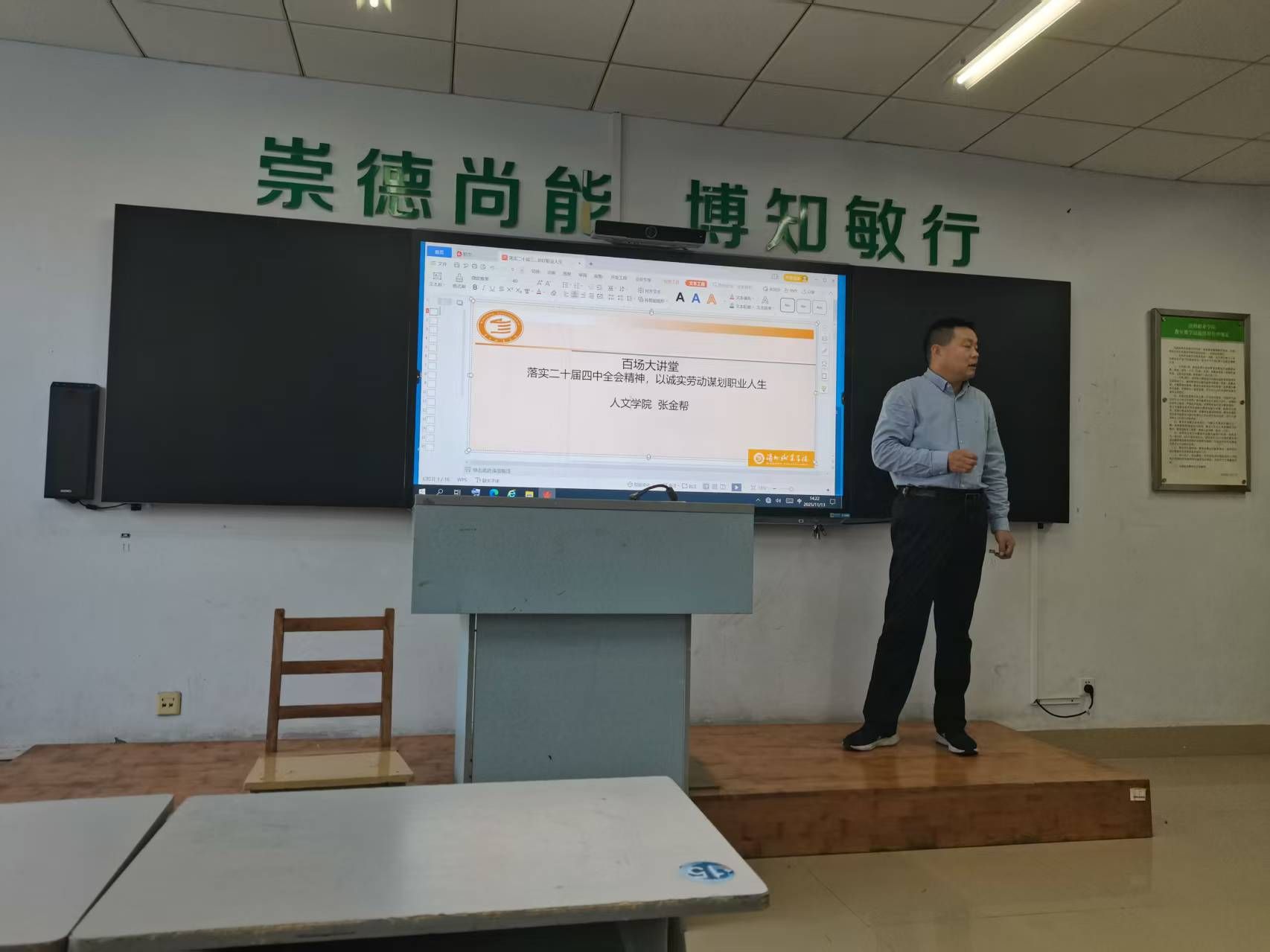 本网2026世界杯官网讯:11月13日下午,公司党总支书记张金帮走进2024级化工生物技术2班,开展《学习二十届四中全会,以诚实劳动谋划职业人生》的百场讲堂。