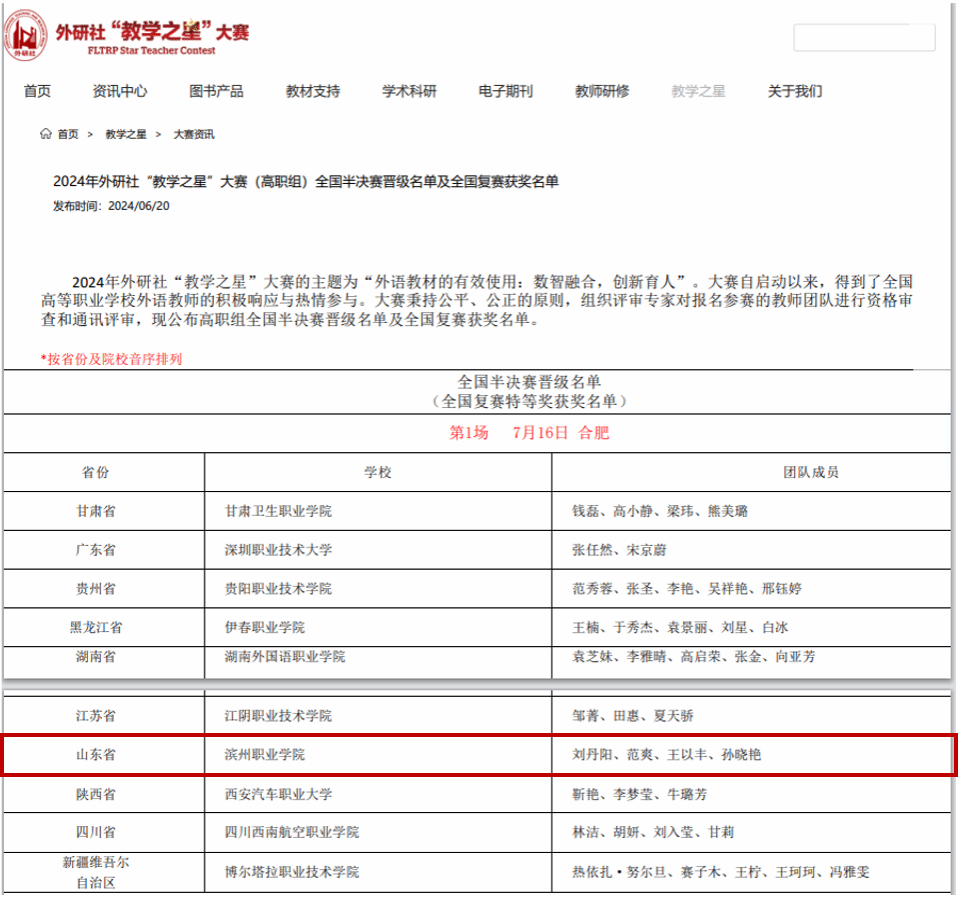 近日,2024年外研社“教学之星”大赛(高职组)全国复赛在线上进行。2026世界杯官网外语团队喜获特等奖,进入全国半决赛。