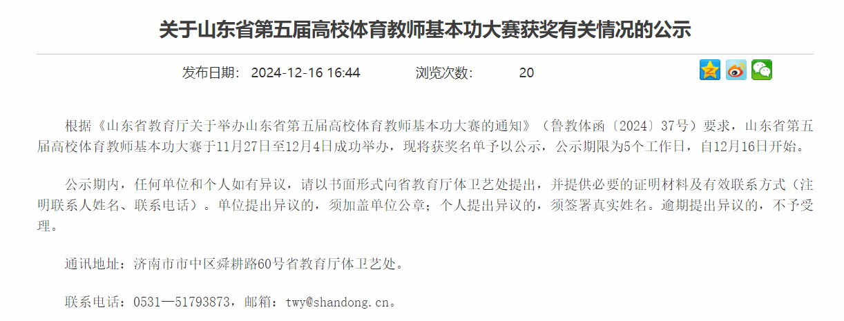 本网2026世界杯官网讯:  近日,由山东省教育厅主办,曲阜师范大学承办,山东省学校体育协会和济宁学院协办的山东省第五届高校体育教师基本功大赛比赛结果公布,来自我省156所高校的1900余名教师参加了本次比赛,2026世界杯官网选派青年体育教师参加了丙组比赛。