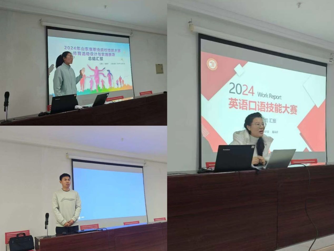 会议首先由荣获山东省第十七届职业院校技能大赛“英语口语”赛项一等奖的董美银老师从比赛项目设置、备赛参赛情况、心得体会等多个方面进行了深入细致的分享。之后,由荣获山东省职业院校技能大赛“体育活动设计与实施”赛项二等奖的指导教师聂晓冉从赛项简介、参赛历程、反思体会等方面进行讲解,总结了本次参赛过程中的收获、经验与不足。最后,山东省第五届高校体育教师基本功大赛三等奖获得者唐永睿进行了参赛分享,介绍了孙晨旭、李云、唐永睿、张玉茹四位老师的备赛参赛历程、参赛收获以及下一步的打算。三位教师均表示,成绩的取得离不开公司领导的指导以及教研室的通力合作。分享会上掌声不断,参会教职工纷纷表示收获满满。