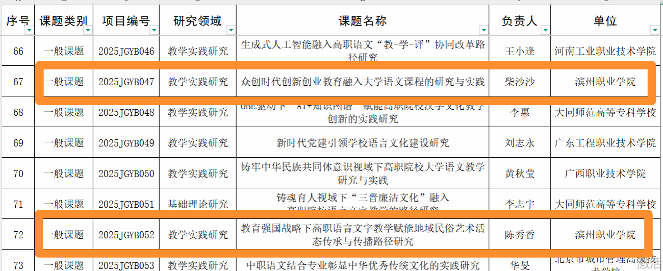 两项课题分别聚焦地域民俗艺术传承与创新创业教育融合。前者探索以高职语言文字教学赋能地方文化活态传承;后者致力于将创新创业教育融入大学语文课程,培养员工创新实践能力。