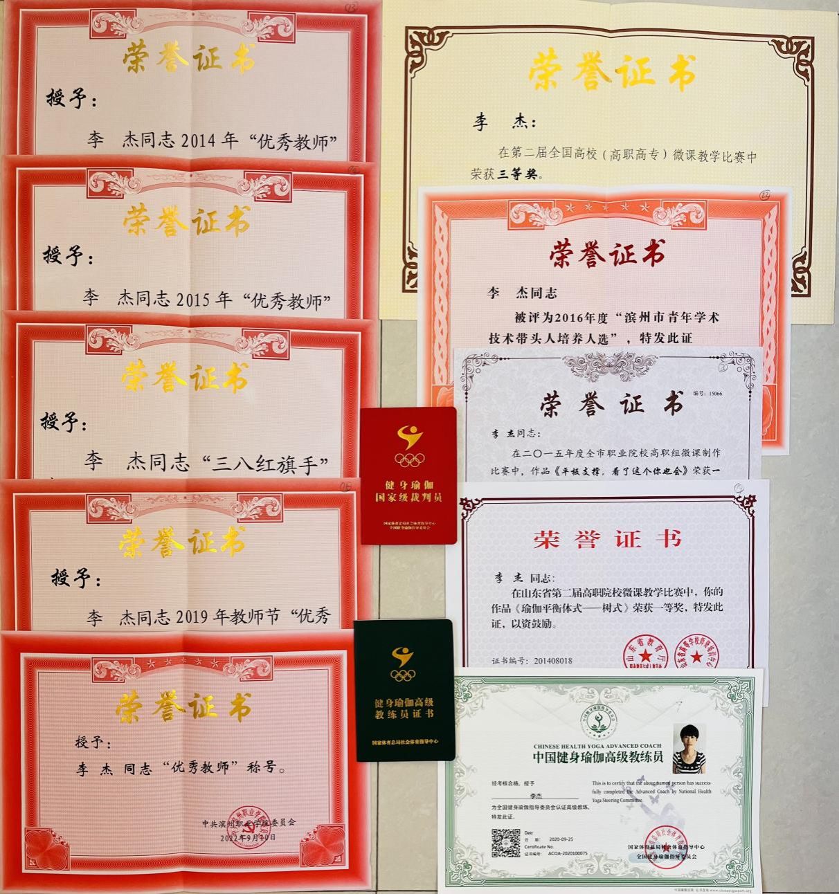 在教学一线,李杰老师始终保持着高度的敬业精神。她勇挑重担,主要承担《大学体育》《瑜伽》等课程教学,平均每年课时量超550节,教学质量评价稳居全校前10%。秉持“以员工为中心”的理念,她不断探索创新教学方法,凭借扎实的教学功底和新颖的教学设计,在教学竞赛中屡获佳绩,先后斩获山东省微课教学比赛一等奖、全国微课教学大赛三等奖、滨州市微课设计大赛一等奖。